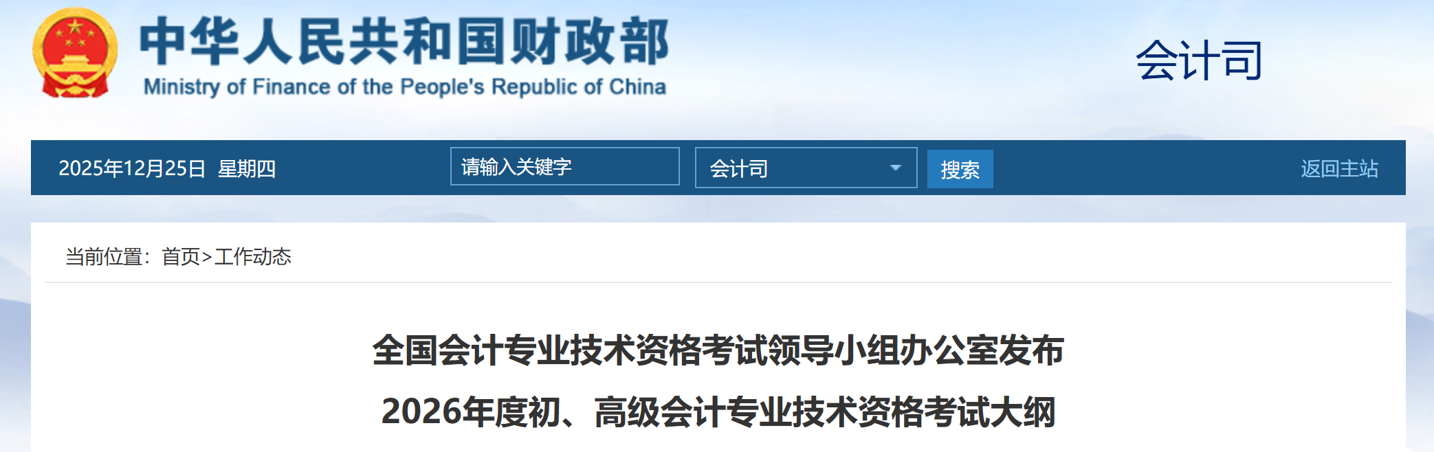 为明确2026年度初、高级会计专业技术资格考试评价标准,全国会计专业技术资格考试领导小组办公室制定了2026年度初、高级会计专业技术资格考试大纲,现予发布。